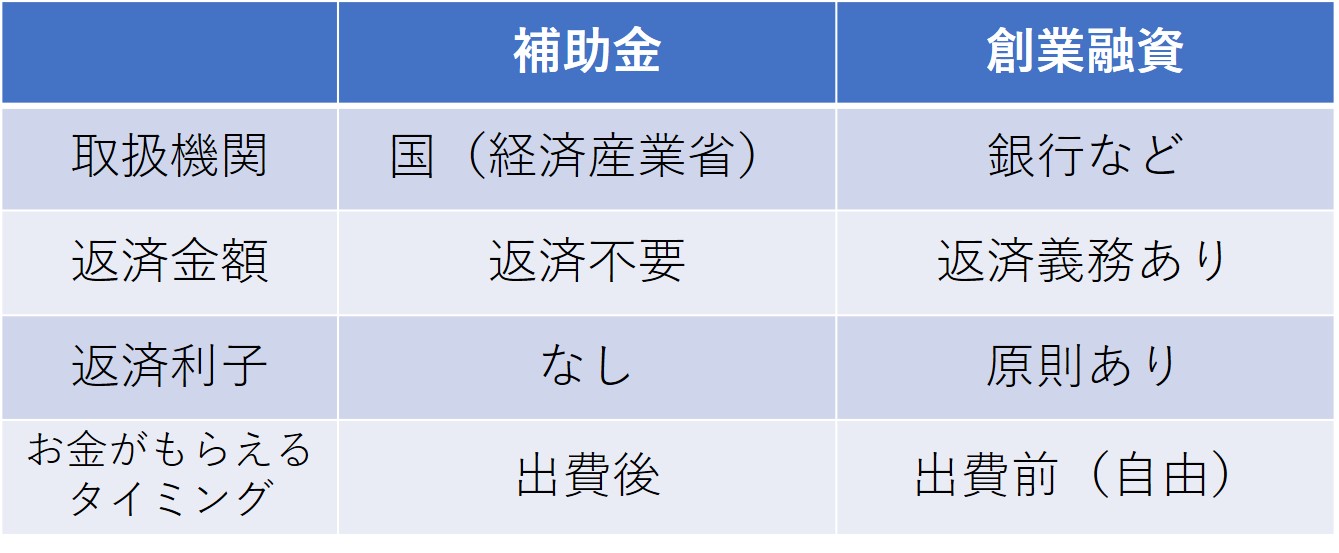 補助金と創業融資の違い