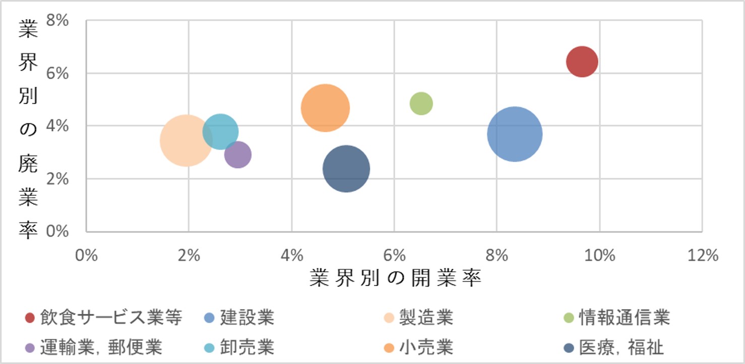 そして、右上にある赤色のマルが、飲食業などの開業率と廃業率を示しています。